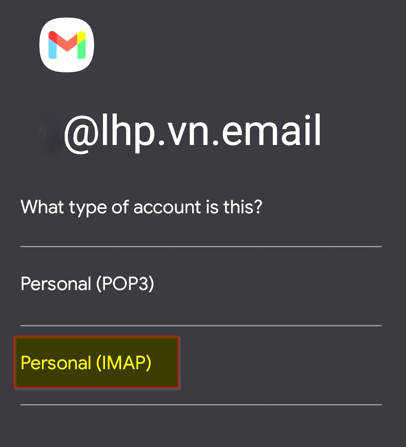 Cách sử dụng tài khoản @lhp.vn.email với app GMAIL trên điện thoại chạy Android: