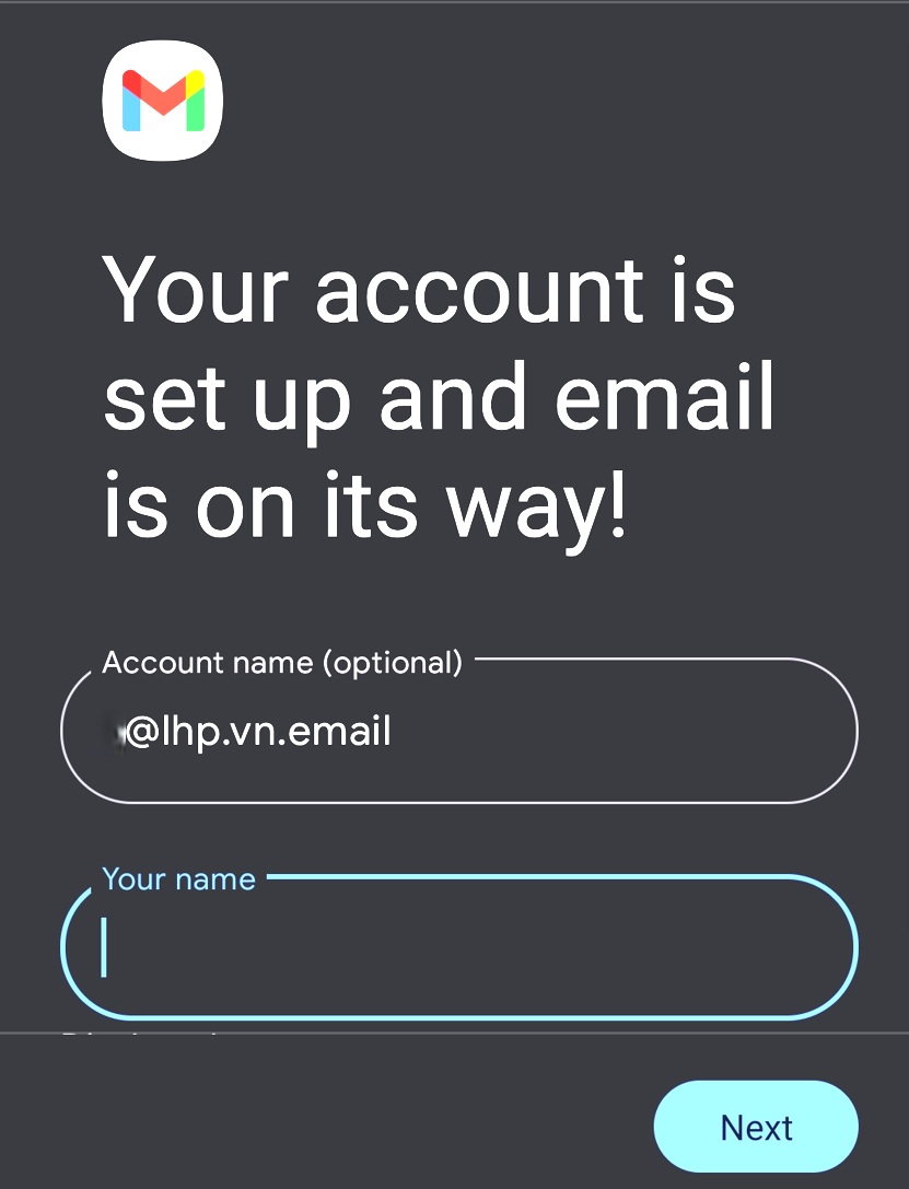 Bước 3: Nhập Tên của bạn, địa chỉ email @lhp.vn.email, và Password của bạn